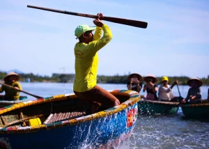 Một trong những hoạt động nổi bật khi đến rừng dừa Bảy Mẫu là trải nghiệm chèo thuyền thúng len lỏi qua những hàng dừa nước xanh mát. Đây là loại hình du lịch đặc trưng gắn liền với đời sống cư dân vùng sông nước Cẩm Thanh.
